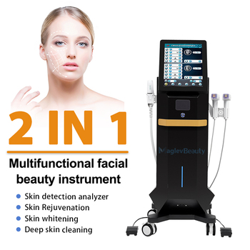 Mesin mikrofon wajah multifungsi, alat peremajaan kulit Salon es Vmax intensitas tinggi ultrasonografi terfokuskan 2 dalam 1